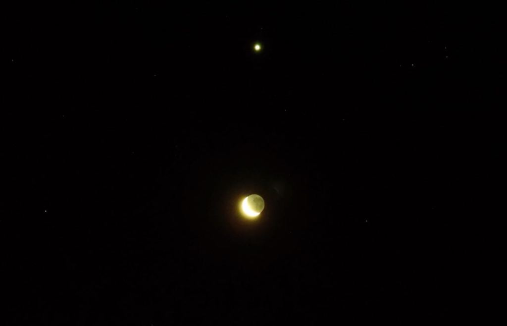 I took an opportunity to use my super zoom point-and-shoot camera to capture this Venus-Moon Conjuction. The moon was a the waxing crescent at roughly 33% and provided a nice opportunity to capture its proximity to Venus. The quality could have been better – but thats the best I could shoot without tracking the object.